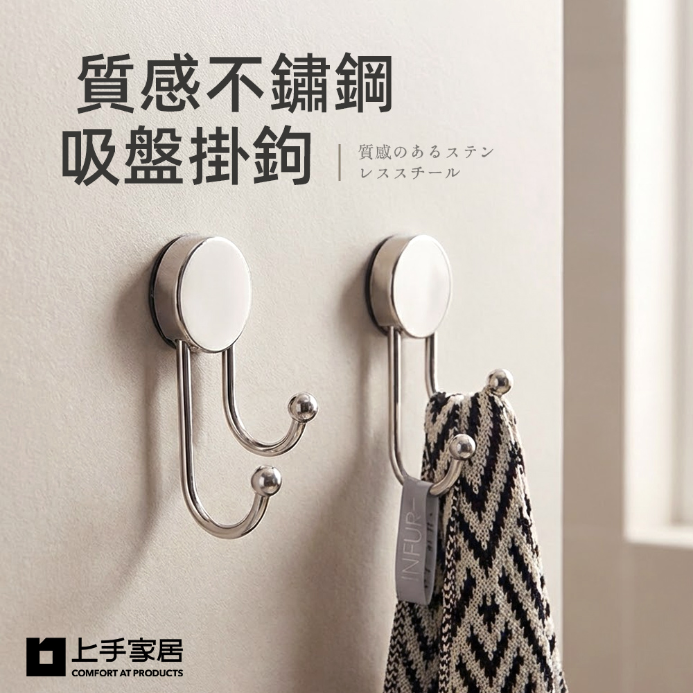 【上手家居】質感不鏽鋼吸盤掛鉤(無痕掛勾/吸盤掛勾/牆壁掛鉤/廚房掛鉤/浴室掛鉤)