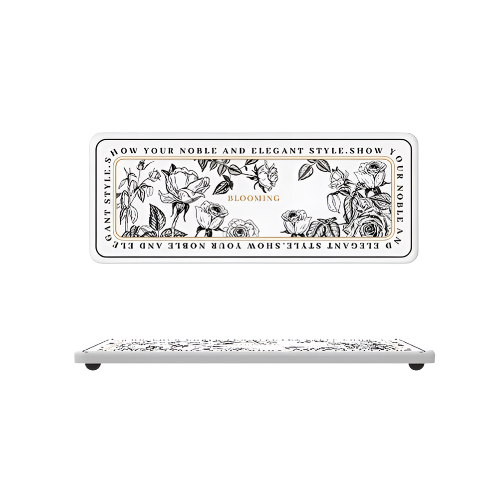 這款硅藻土洗漱墊,具備優異的吸水性能,能迅速吸收水滴,保持檯面乾爽。四角配有不鏽鋼墊高設計,防滑且避免水漬滲透,讓您的浴室或廚房環境更加整潔衛生。