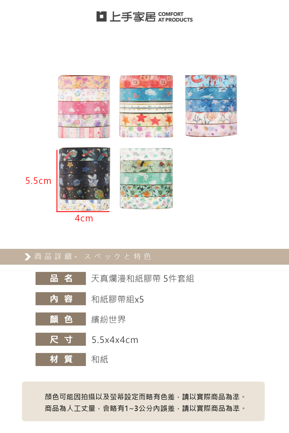【上手家居】天真爛漫和紙膠帶 5件套組 繽紛世界(手帳貼紙/可愛貼紙/裝飾貼紙/和風紙膠帶)