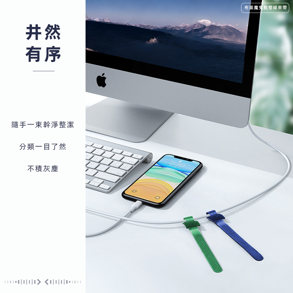 這款布面魔鬼氈束帶特別適合有線材收納困擾的你,輕鬆整理各式電線,告別線材纏繞的困擾。繽紛色彩混色出貨,讓收納也能有好心情,魔鬼氈設計可重複使用,隨時調整線材鬆緊,讓桌面更加清爽整潔。