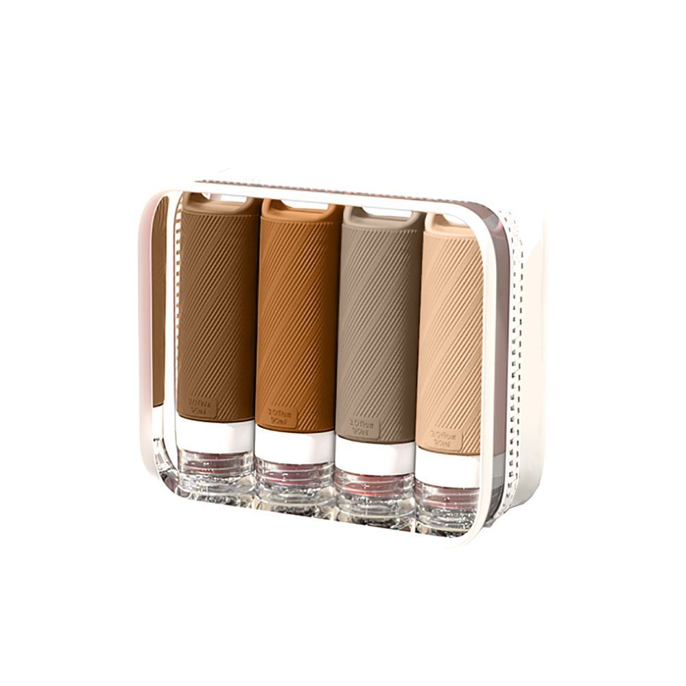 【上手家居】可倒掛矽膠乳液分裝瓶 4入組-大地色(旅行分裝瓶/擠壓瓶/軟管分裝瓶/旅行分裝袋/矽膠分裝瓶)