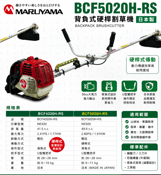 【TAKUMI匠】丸山 BCF5020H-RS 側背式硬桿割草機 日本製造|50cc|割草機|二行程割草機