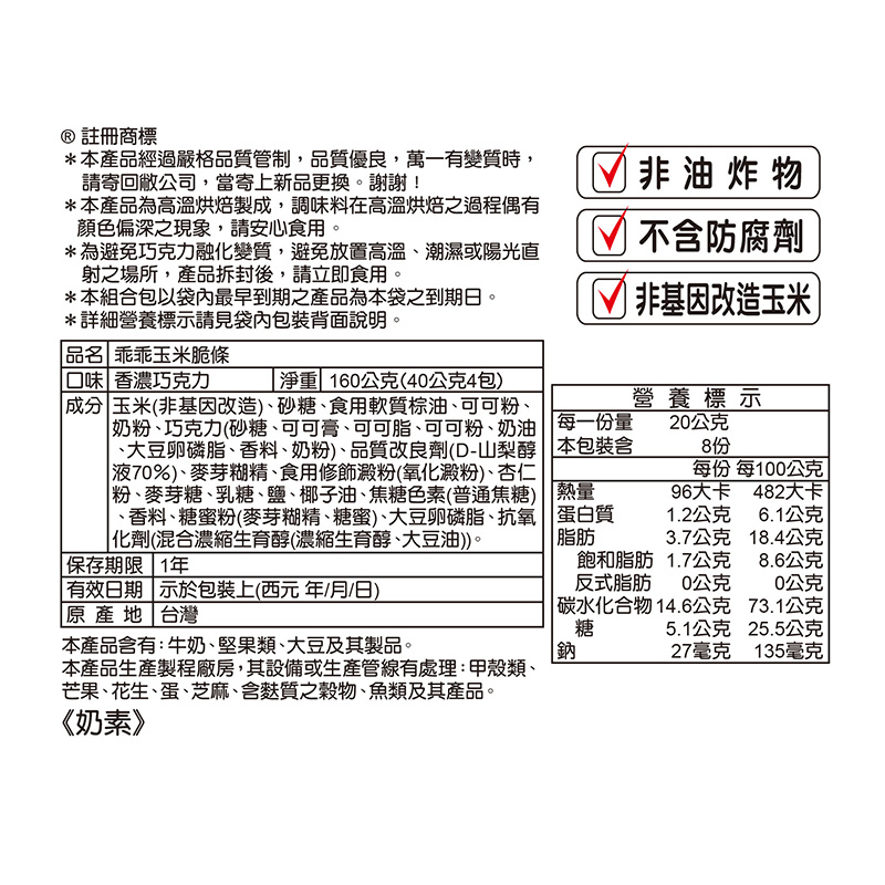 ◎品牌:乖乖 ◎規格: 160g克 x 1 x 1Bag袋