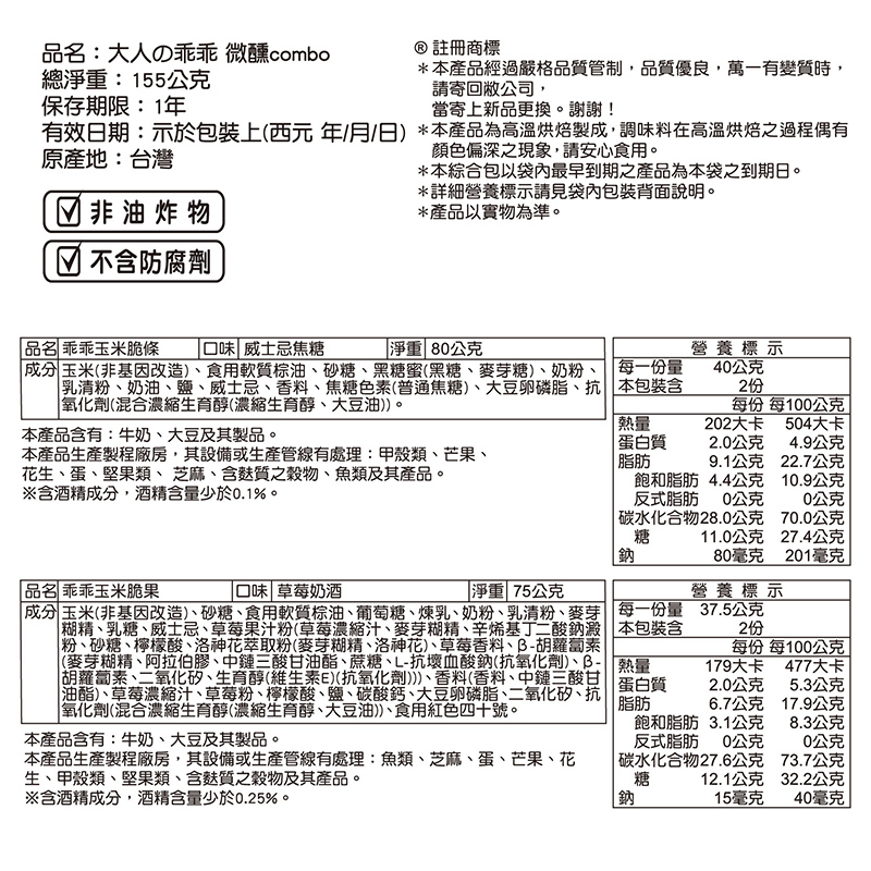 ◎品牌:乖乖 ◎規格: 155g克 x 1 x 1Bag袋