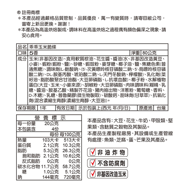 ◎品牌:乖乖 ◎規格: 80g克 x 1 x 1Bag包