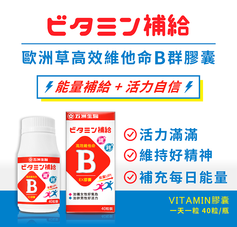 【五洲生醫】歐洲草高效維他命B群膠囊(40粒/盒)