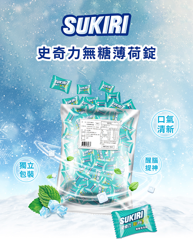 【五洲生醫】SUKIRI史奇力酷涼勁爽薄荷錠 旗艦包(292.5g)