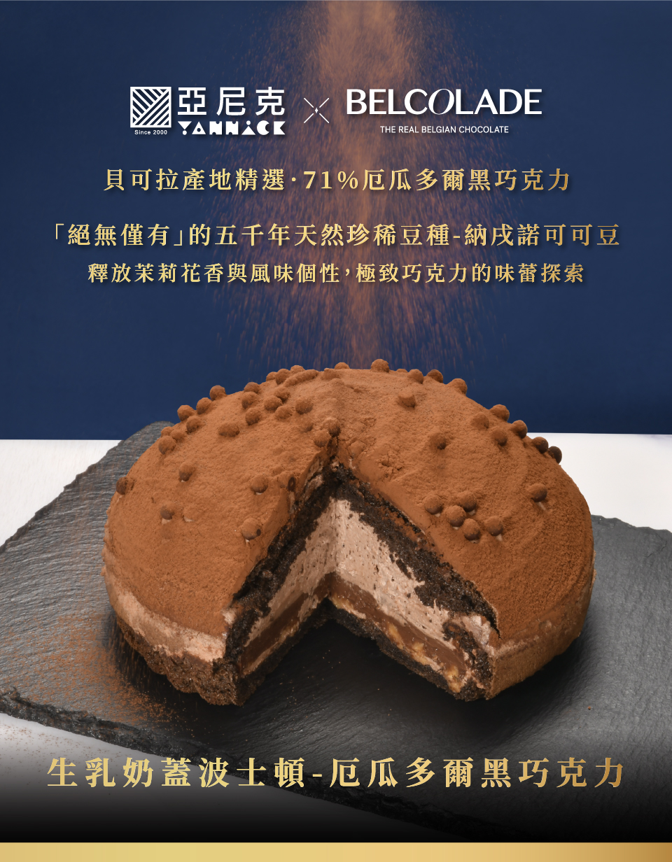 【亞尼克菓子工房】生乳奶蓋波士頓-厄瓜多爾黑巧克力 6吋(5個工作日出貨)