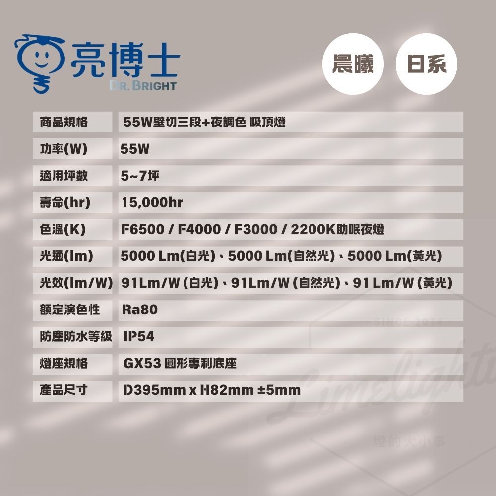 亮博士 LED 55W 壁切調色吸頂燈 晨曦 日系 壁切 四段調色 小夜燈