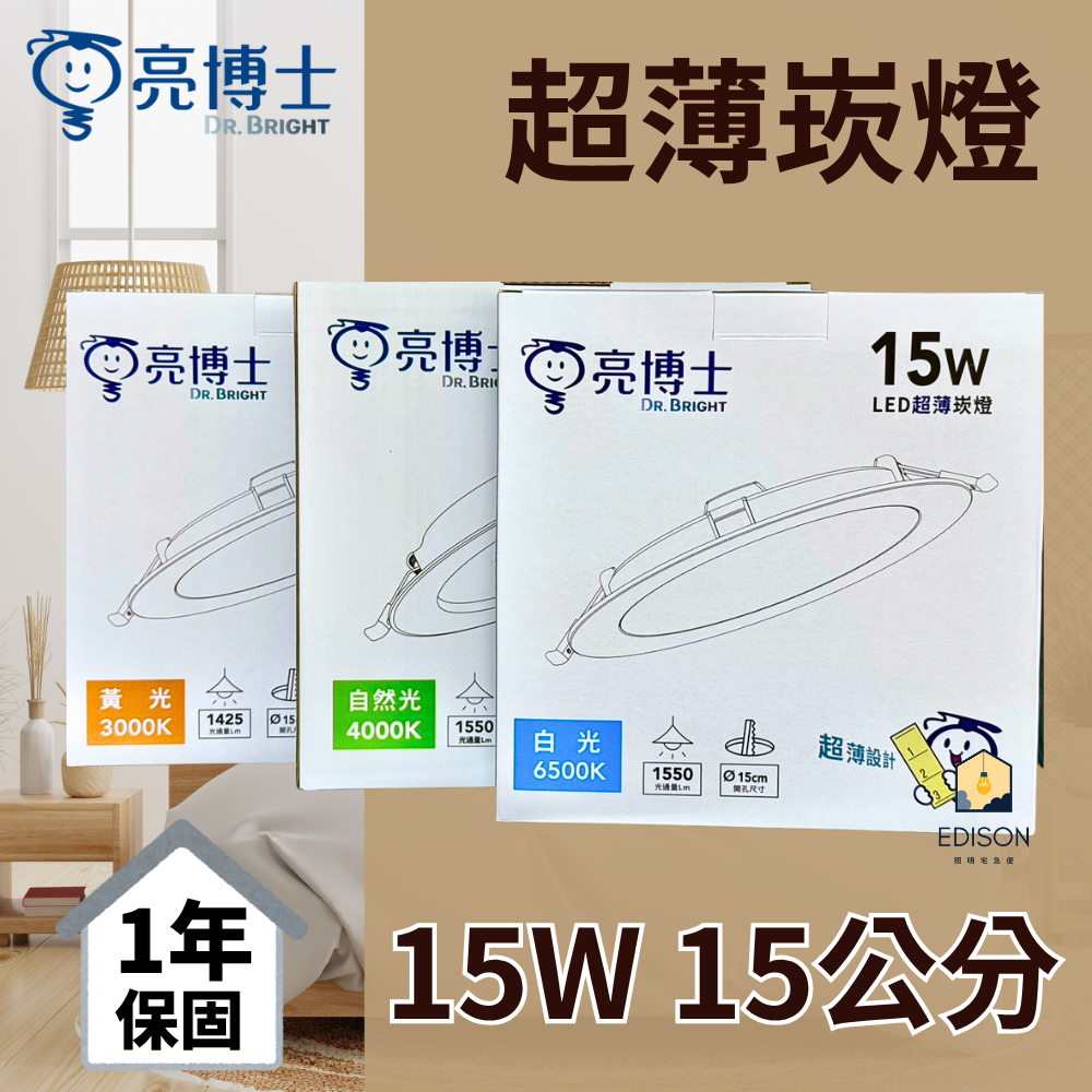 亮博士 LED 超薄崁燈 15W 崁入孔 15公分 白光 自然光 黃光 保固一年