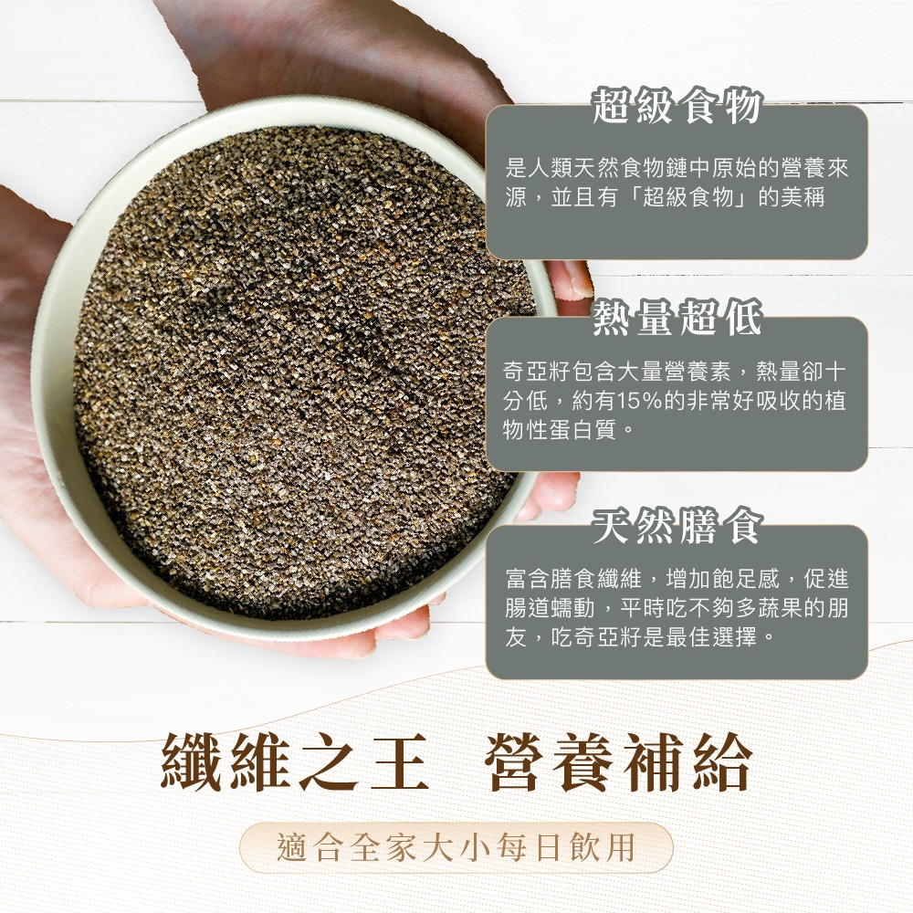 使用玻利維亞無污染奇亞籽研磨低溫烘焙,保留完整營養每100g含有40g膳食纖維淡淡堅果香氣,無澀味、無腥味不含麩質,無添加糖,全素可食可直接沖泡或搭配飲品、甜品食用