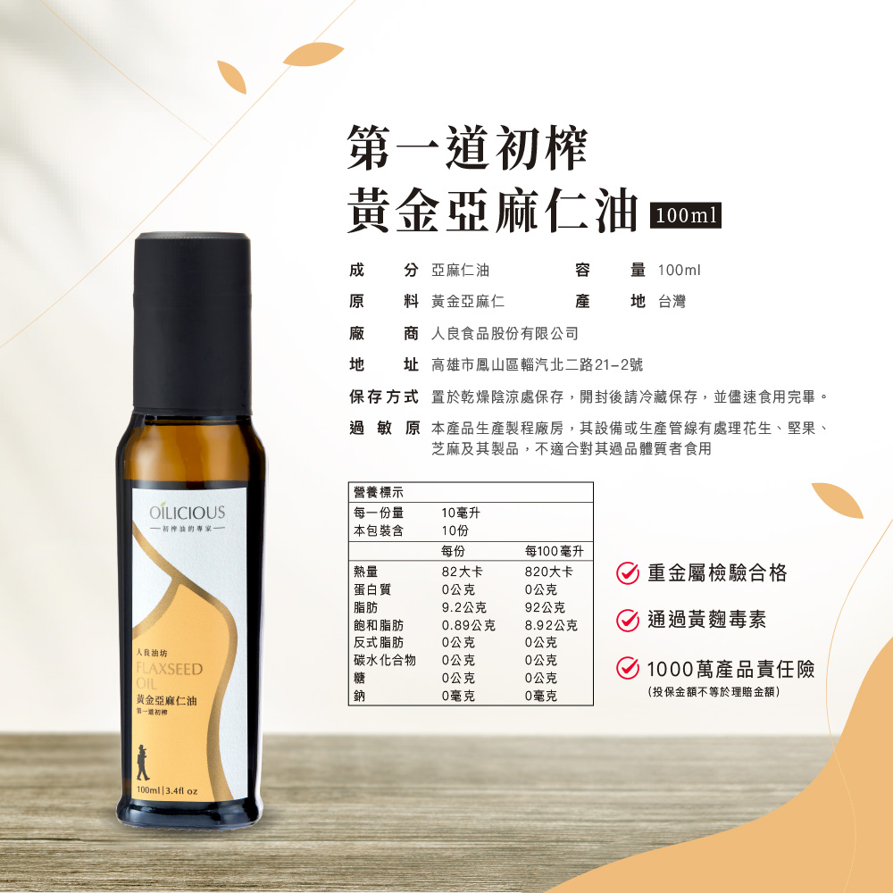 [人良油坊]第一道初榨黃金亞麻仁油100ml