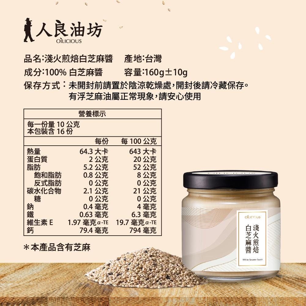 ◎品牌:人良油坊 ◎規格: 160g ◎逛逛專館: Oilicious 人良油坊