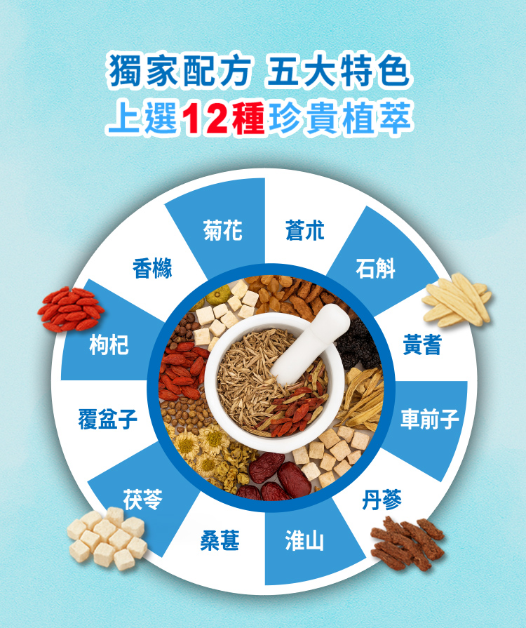 精選 12 種植萃,專為現代人養身需求設計。