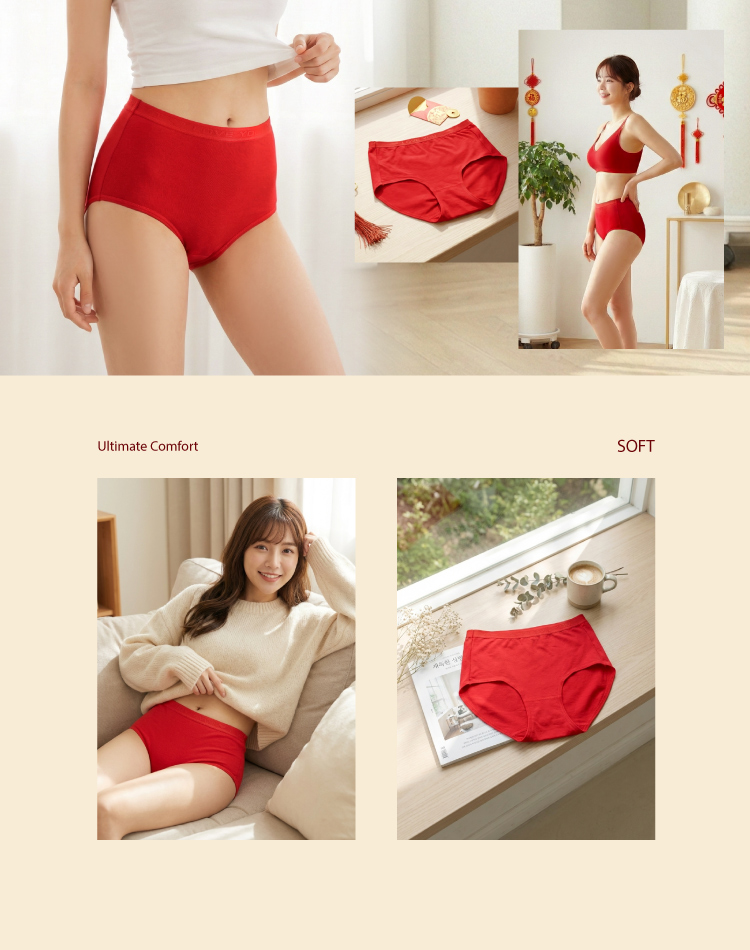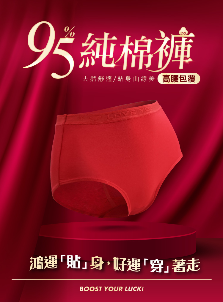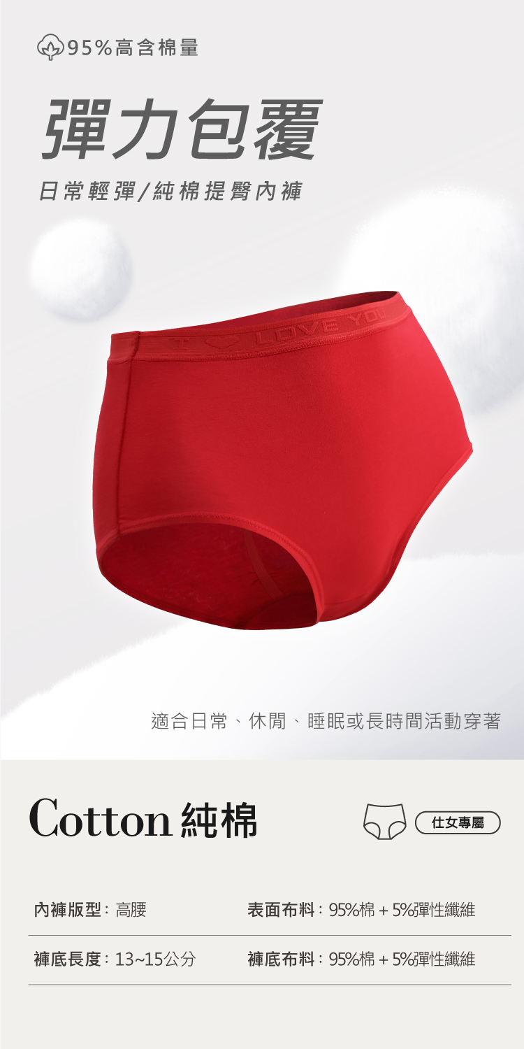 【伊柔 EVEROY】95%純棉高腰紅內褲 3D立體提臀 M-XL D500