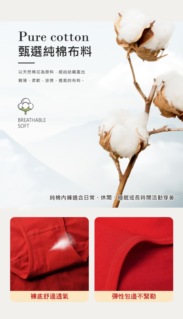 【透氣呼吸】 吸濕排汗不悶熱,私密肌的深呼吸。