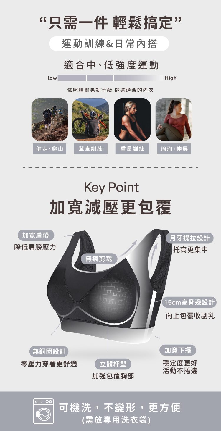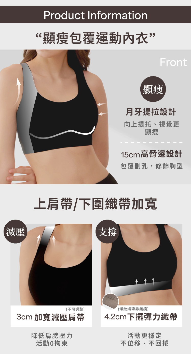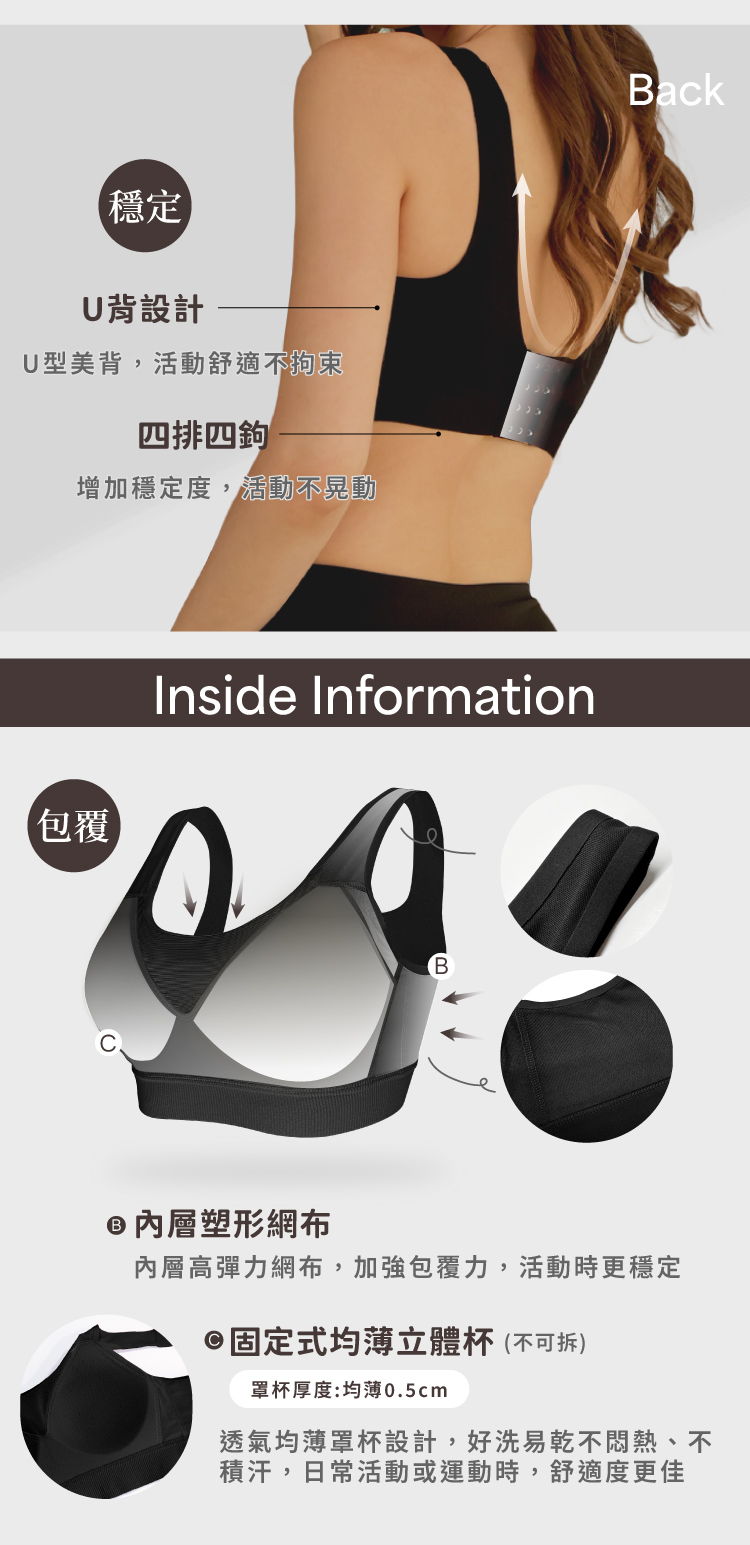 四排四鉤+美背設計|服貼不捲邊,活動自在零束縛