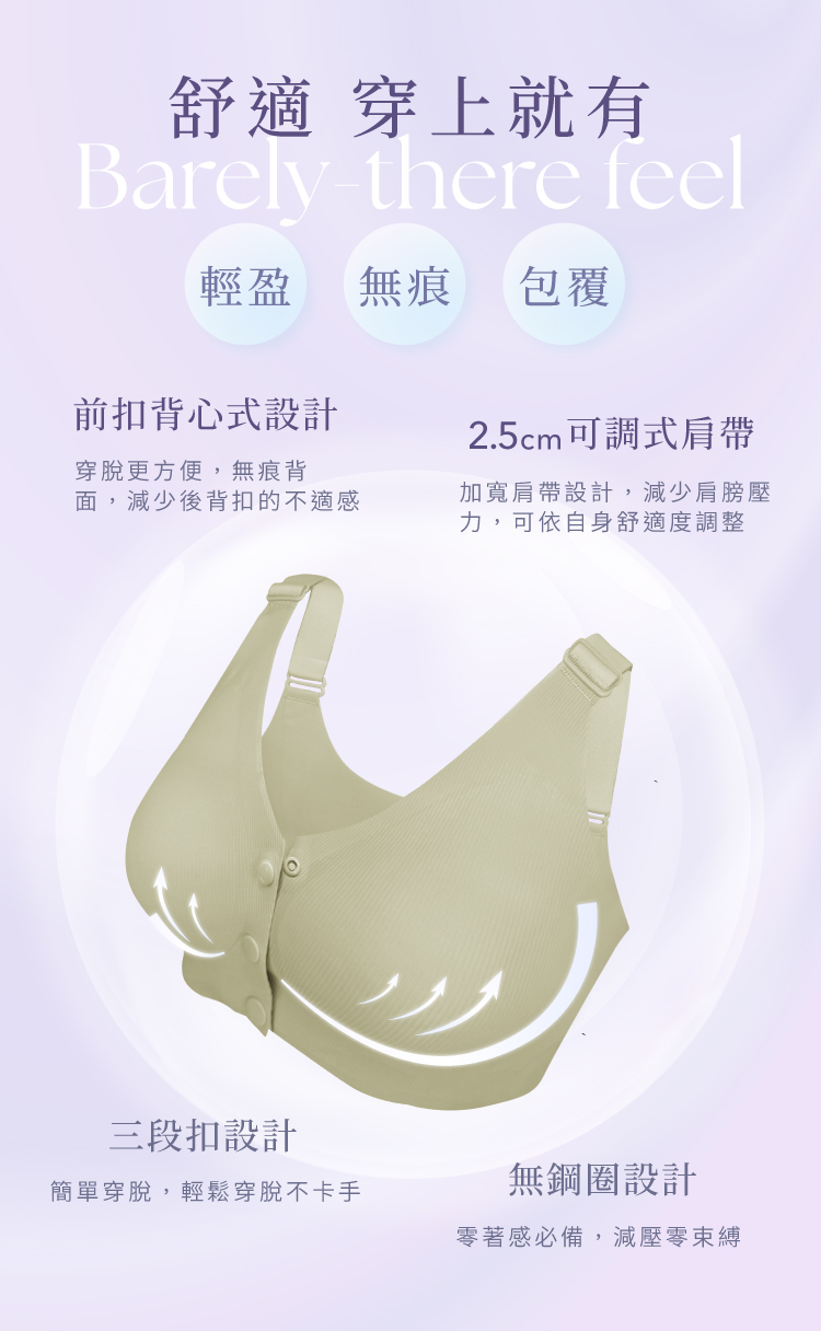 【伊柔 EVEROY】 裸肌無感無鋼圈前扣哺乳內衣 M-3XL(EQ)|無痕包覆.加大尺碼 W031-86 酪梨綠