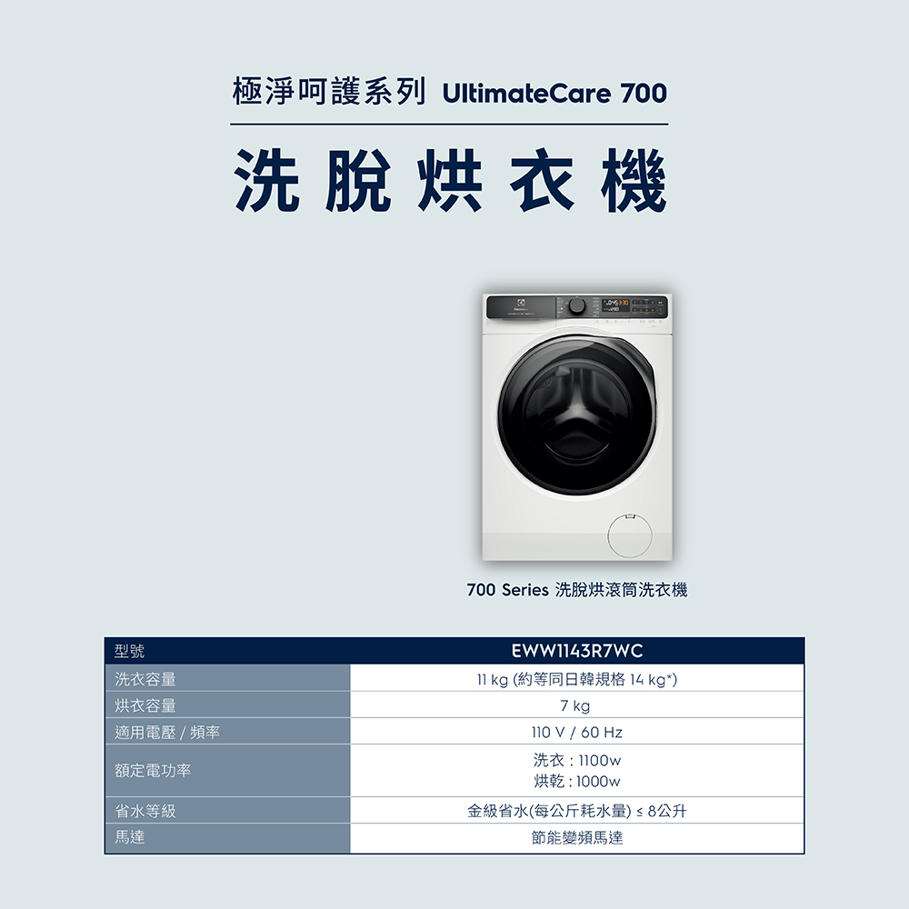 伊萊克斯EWW1143R7WC洗脫烘滾筒洗衣機11kg