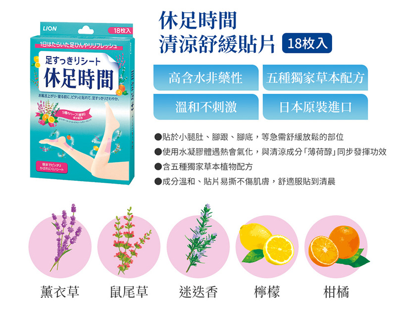 4.貼布裡含有水分,帶走足部的熱氣,讓足部涼爽、放鬆。搭配5種植物成分,關懷一整天辛苦的腳丫