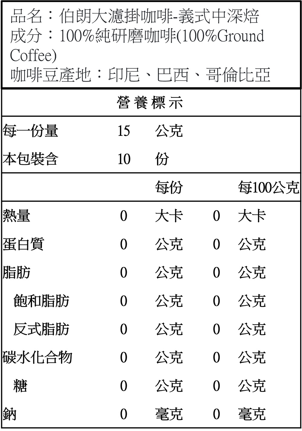 ◎品牌:伯朗 ◎規格: 15g克 x 10 x 1Box盒