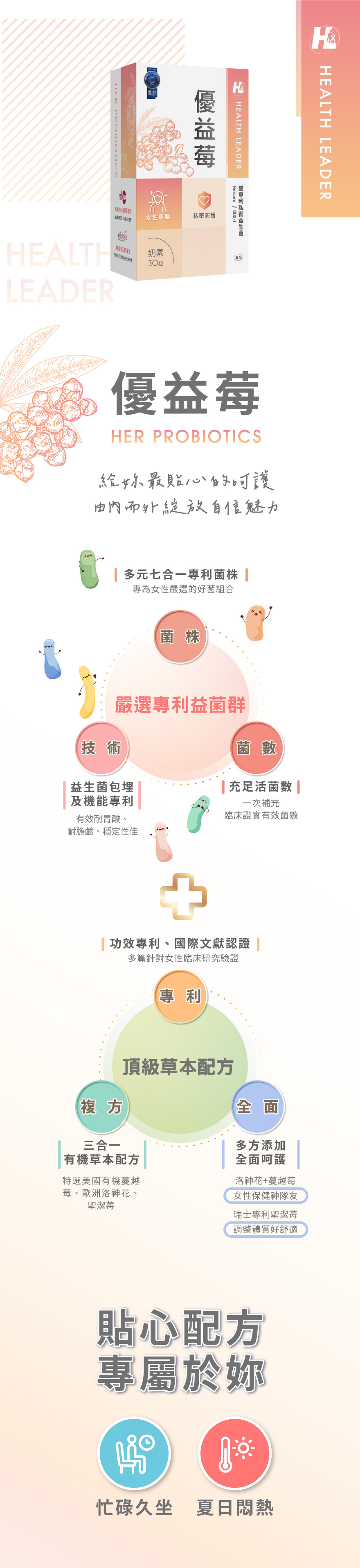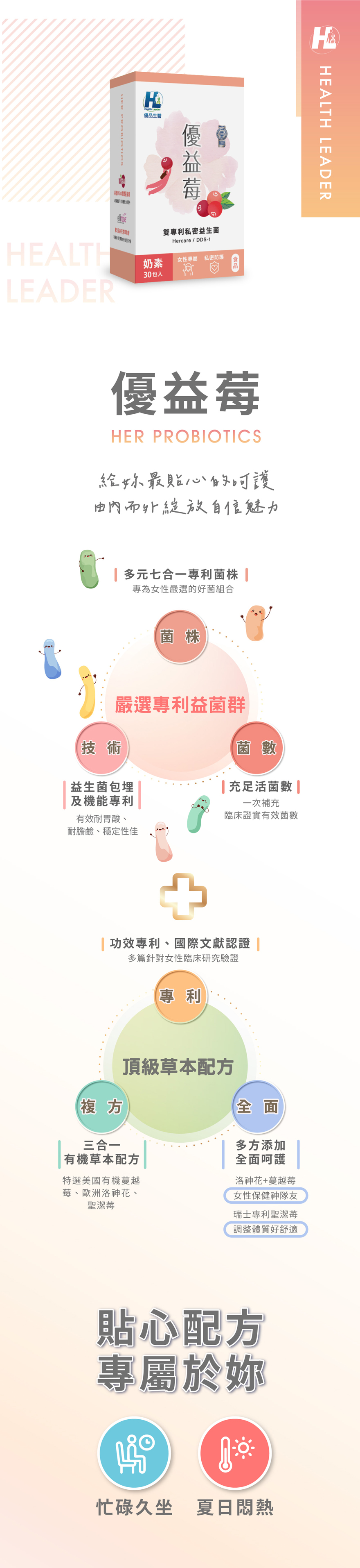 嚴選菌株|專利DDS-1+Hercare改變細菌叢生態頂級植萃|專利蔓越莓、洛神花、聖潔莓溫柔調理安心品質|通過塑化劑、重金屬、西藥檢驗女性專屬|調整體質x健康維持˙規格容量:1盒30包˙劑型:粉劑˙食用方法:每天1包,加強每天2包 建議早晨或睡前,空腹食用˙本產品含有聖潔莓,建議18歲以上食用,懷孕或哺乳期婦女不宜食用