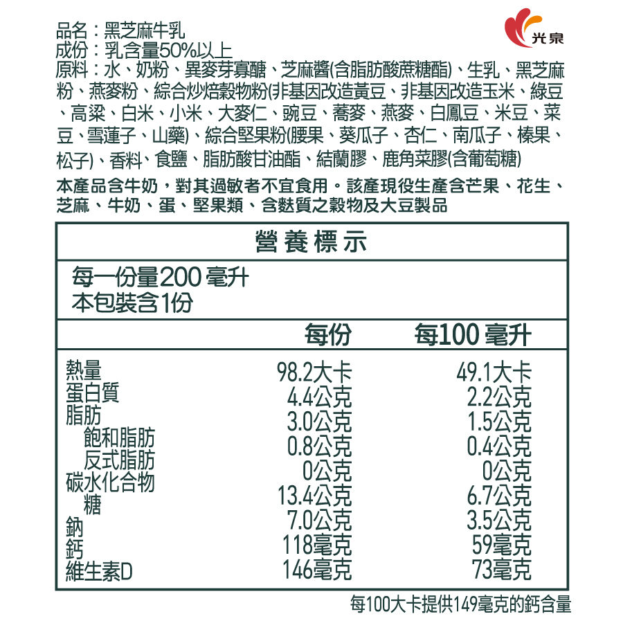 光泉保久乳飲品-黑芝麻牛乳-200ml