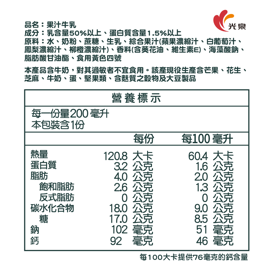 ◎品牌:光泉 ◎規格: 200ml毫升 x 1 x 6Bottle瓶