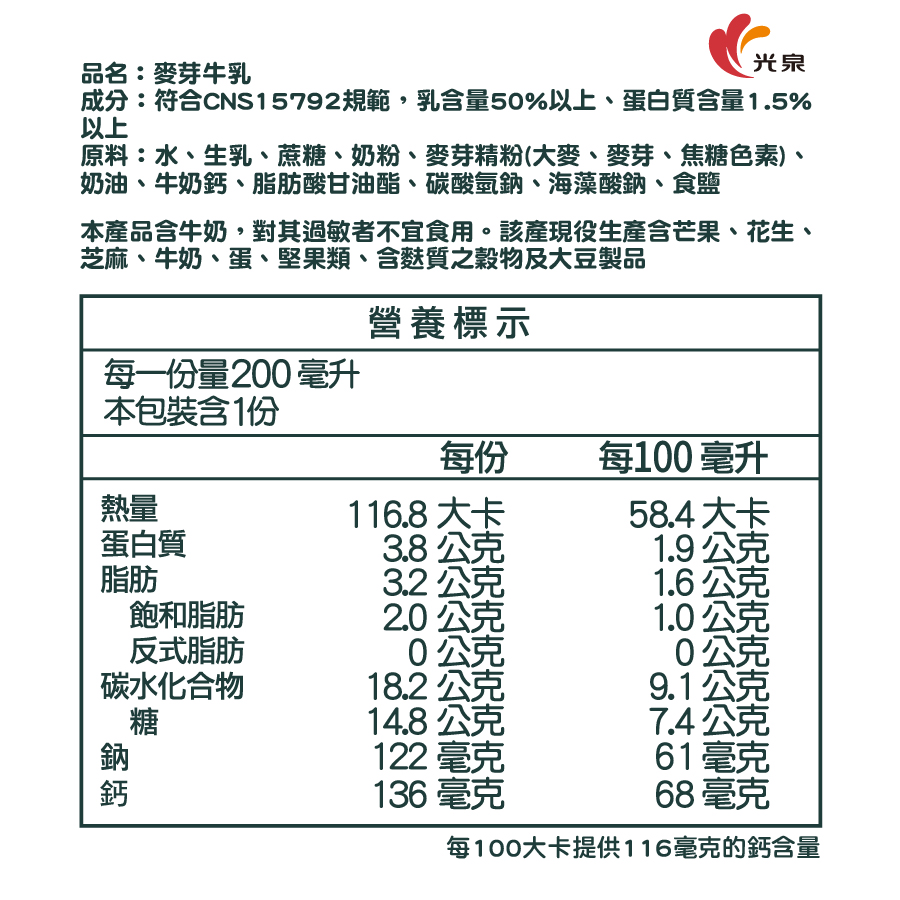 ◎品牌:光泉 ◎規格: 200ml毫升 x 1 x 6BOTTLE瓶