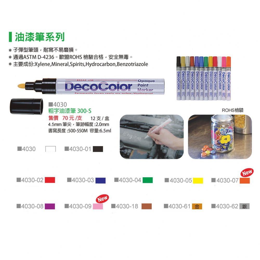 【龍品文創】內田 4030 300-S 粗字油漆筆 -1支-銀