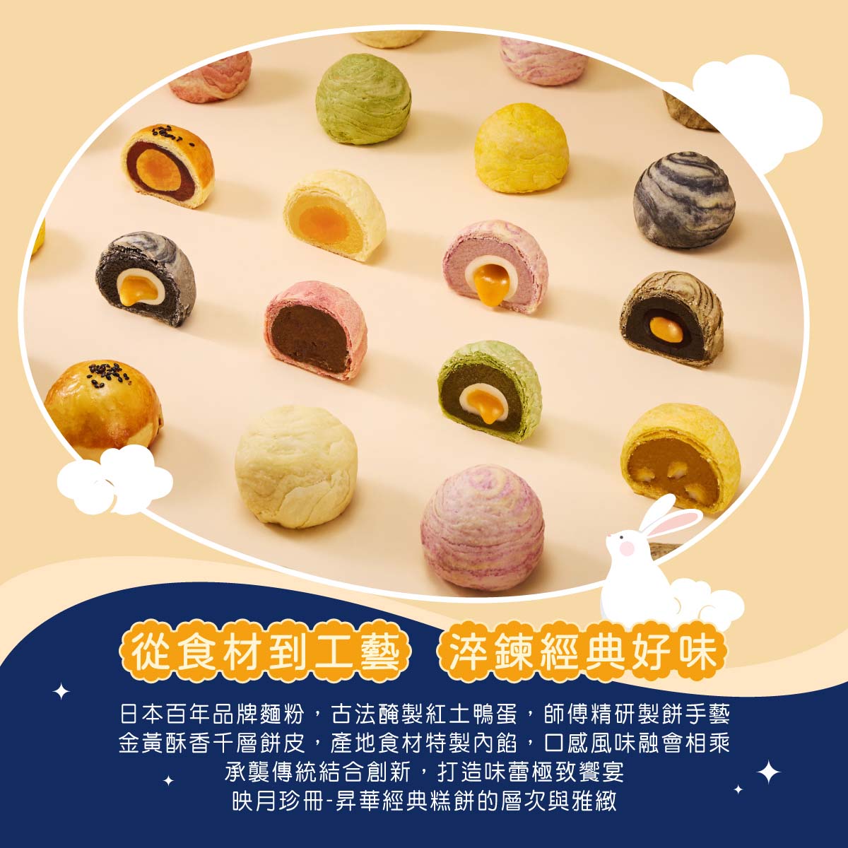 一盒集結8大熱銷口味★紅豆蛋黃酥 ★白玉明月酥 ★柴燒桂圓酥 ★楊枝甘露酥★芋頭流心酥 ★芝麻流心酥 ★抹茶流心酥 ★焙香烏龍酥冊子七彩酥+隱藏版焙香烏龍酥願望實現!