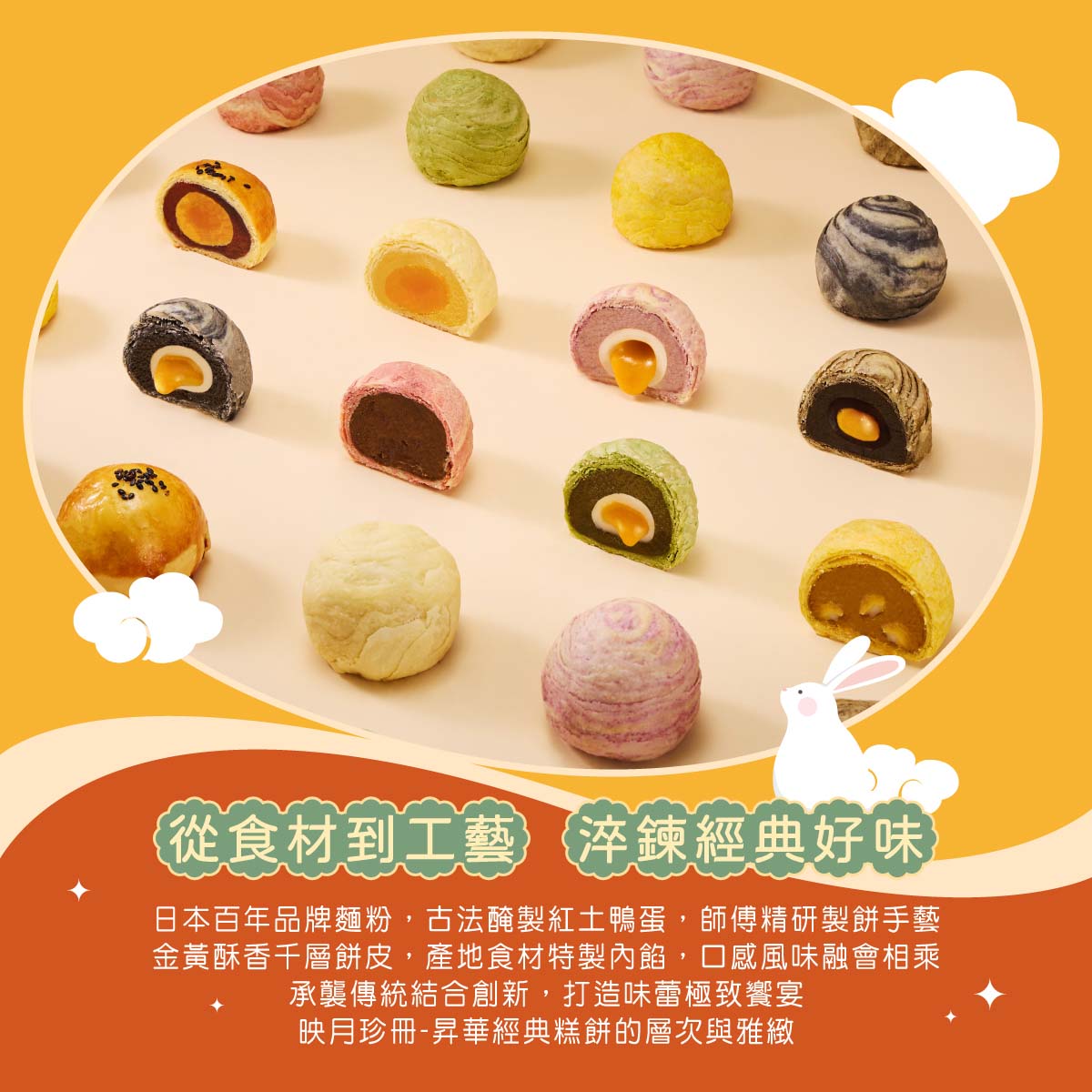 一盒集結7大熱銷口味|人氣港式千層酥全包辦!★紅豆蛋黃酥 ★白玉明月酥 ★柴燒桂圓酥 ★楊枝甘露酥★芋頭流心酥 ★芝麻流心酥 ★抹茶流心酥冊子七彩酥願望實現!