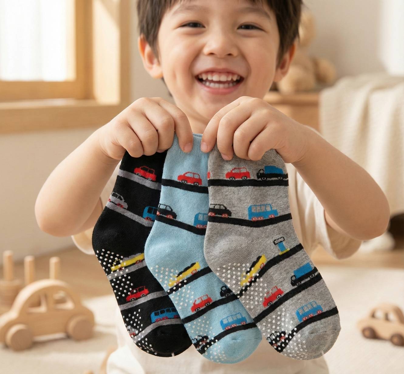 [凱美棉業] 八雙組 MIT台灣製 純棉止滑童襪-汽車上路款