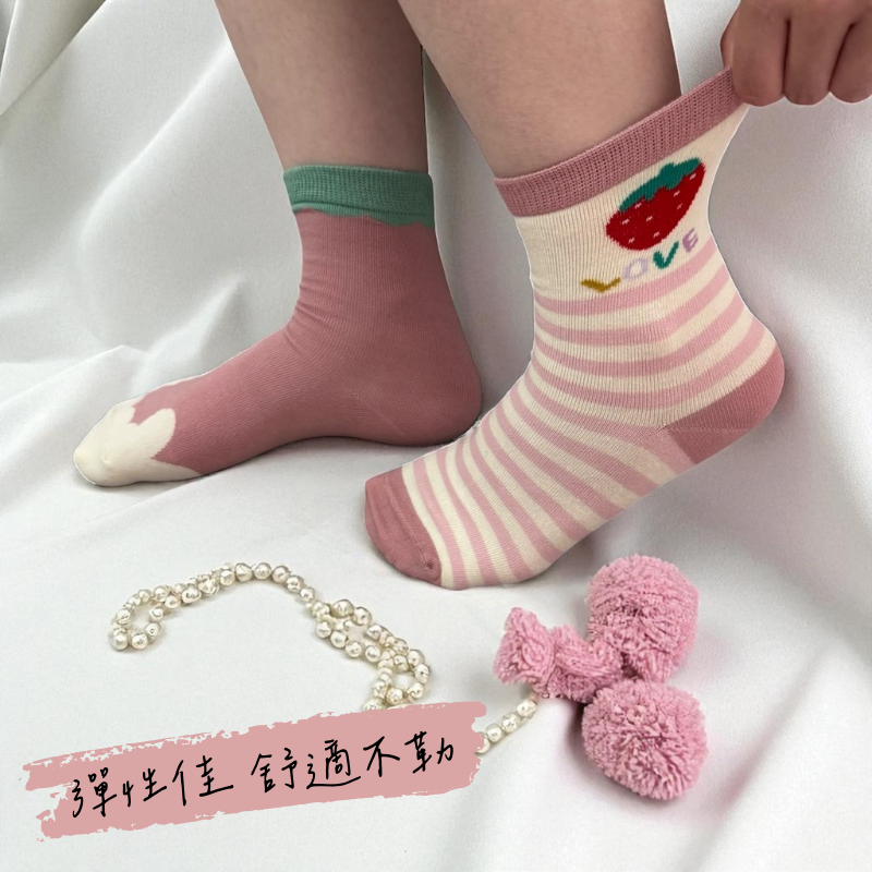 [凱美棉業|12雙 隨機出色 韓版純棉大童襪 草莓兔兔款 動物童襪 卡通童襪 可愛襪 女童襪 兔兔 寶寶襪