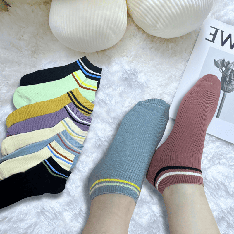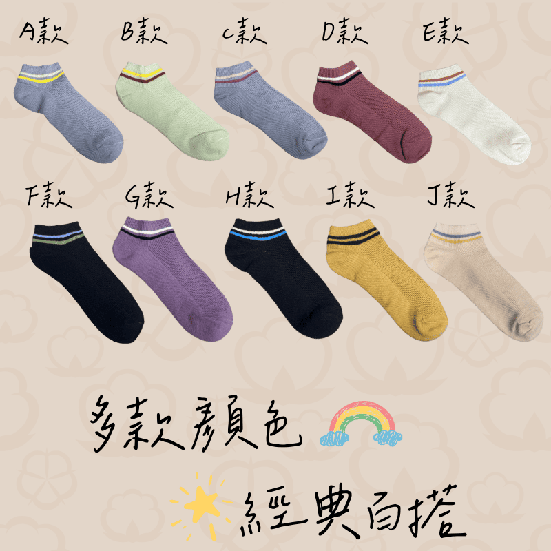 [凱美棉業] 8入 隨機出色 MIT台灣製 100%精梳棉條紋短襪 腳踝襪 純色條紋 22-26cm