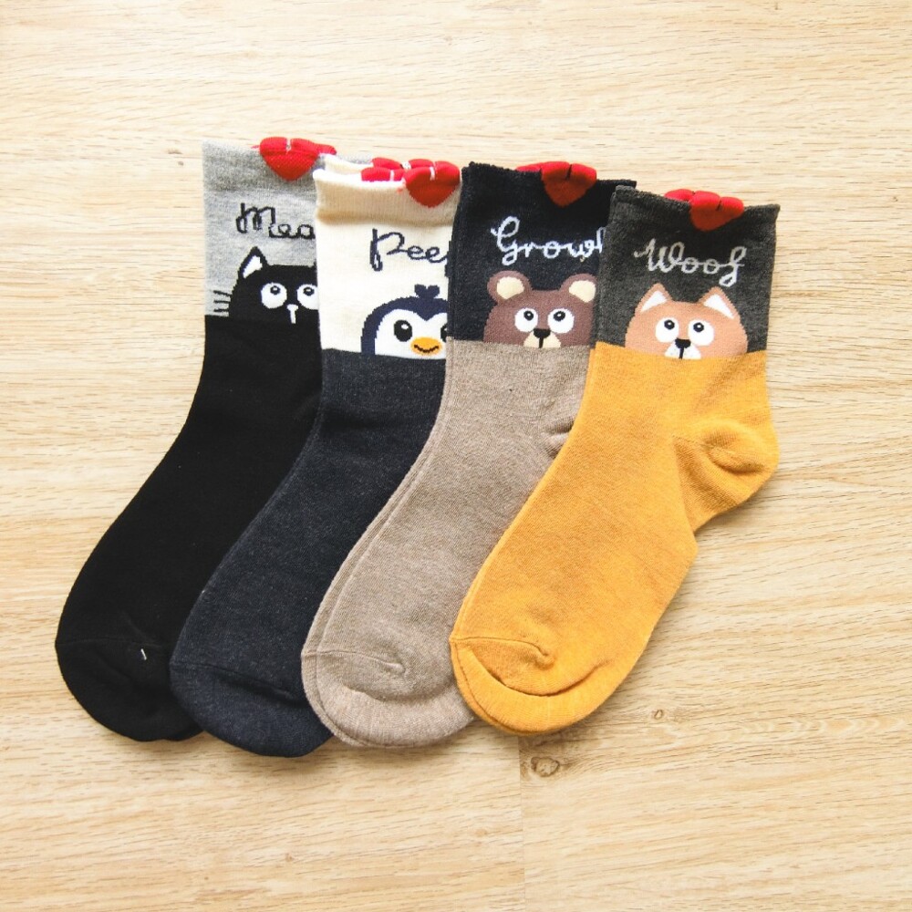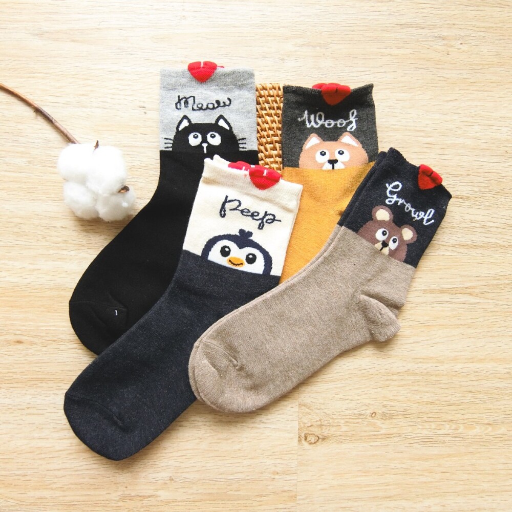 [凱美棉業]12雙 隨機出色 MIT台灣製 精緻設計純棉女襪 雙色動物款
