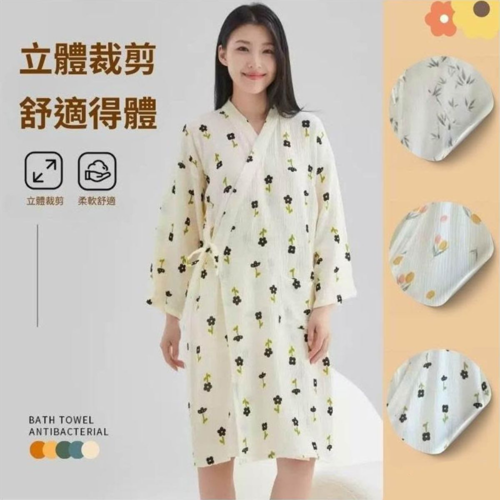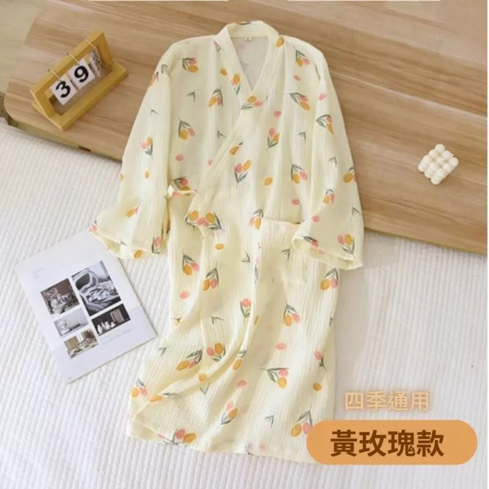 凱美棉業|🔥聖誕限定送🔥 日式睡袍女雙層紗布純棉睡衣短袖浴袍汗蒸服甜美可愛家居服可外穿 隨機出貨