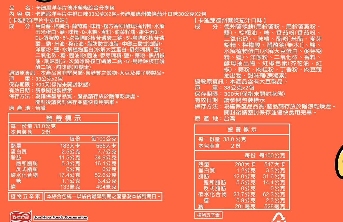 卡迪那洋芋片德州薯條綜合分享包