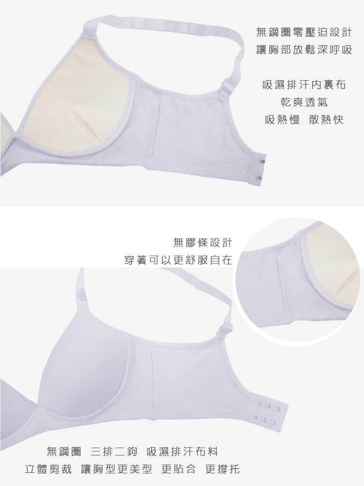 可蘭霓Clany 台灣製吸濕排汗無痕無鋼圈美型 S-2XL 減壓內衣 灰色 6961-61