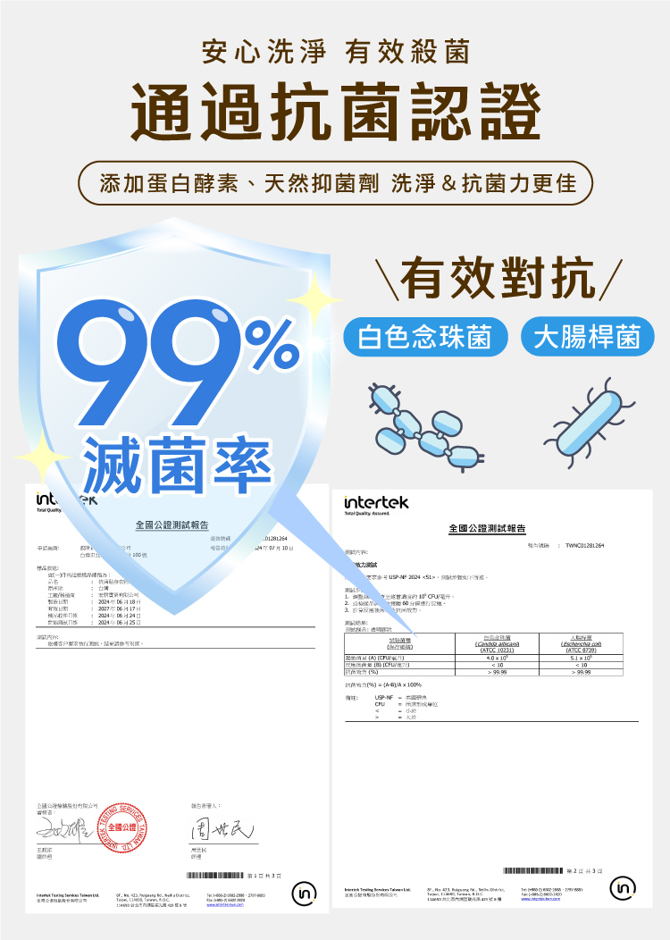 通過抗菌認證,滅菌率高達99%