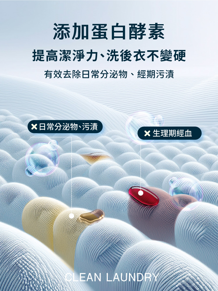 添加蛋白酵素,輕鬆去除血漬、尿漬、分泌物