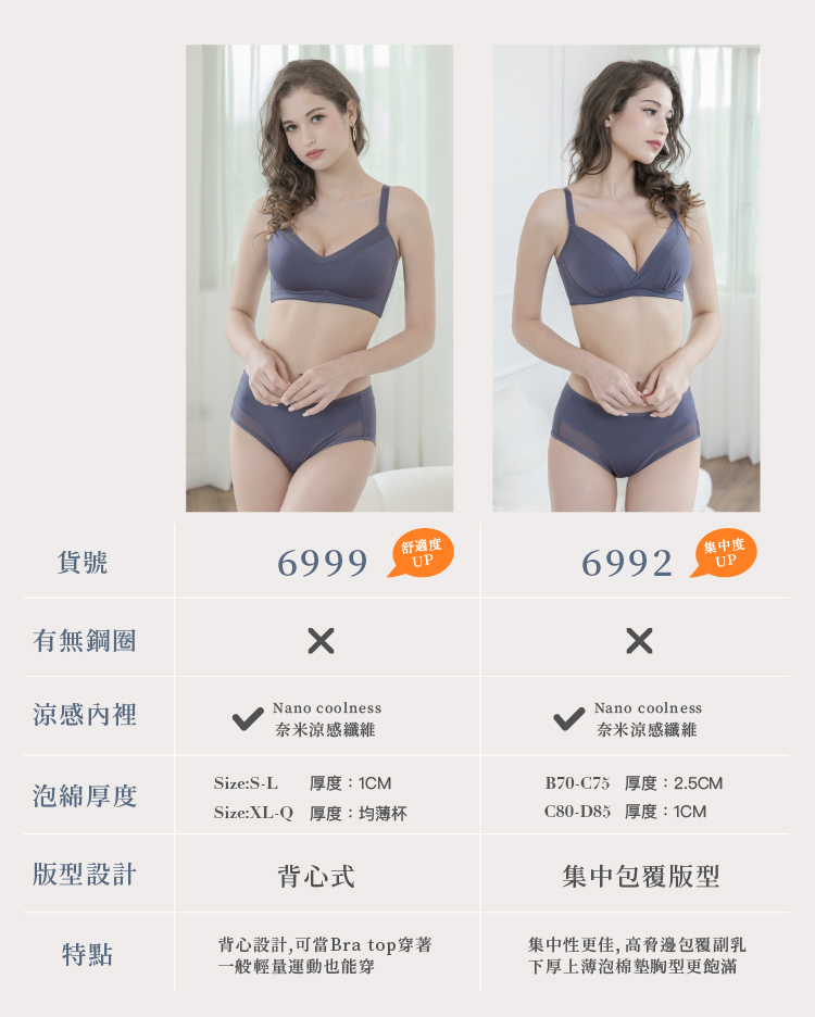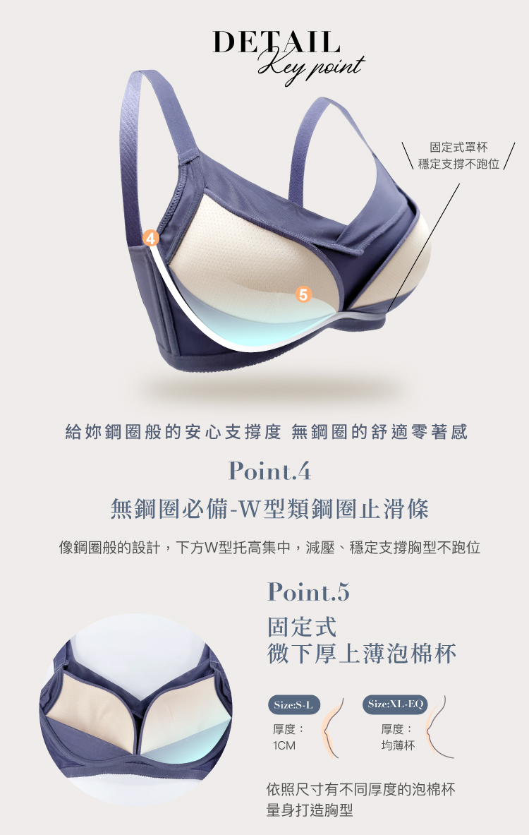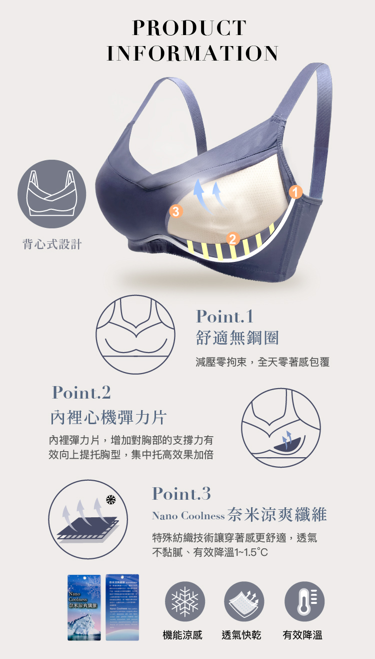 【可蘭霓Clany】台灣製慵懶自在 涼感包覆無鋼圈S-3XL內衣 深灰 6999-62