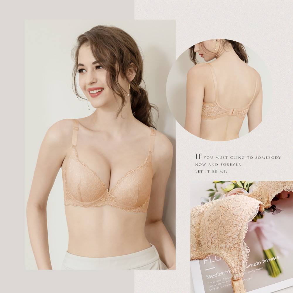 質感無痕雕花蕾絲,下厚上薄泡棉杯,創造渾圓胸型