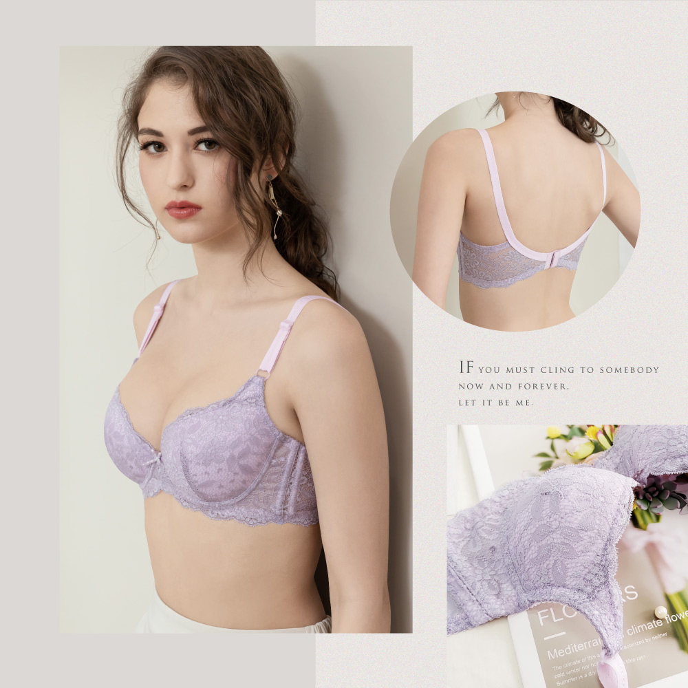 質感無痕雕花蕾絲,下厚上薄泡棉杯,創造渾圓胸型