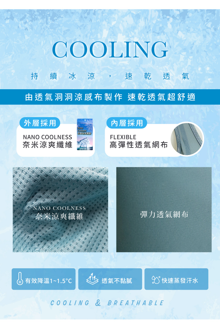 採用涼感x吸濕排汗布料,速乾透氣不悶熱