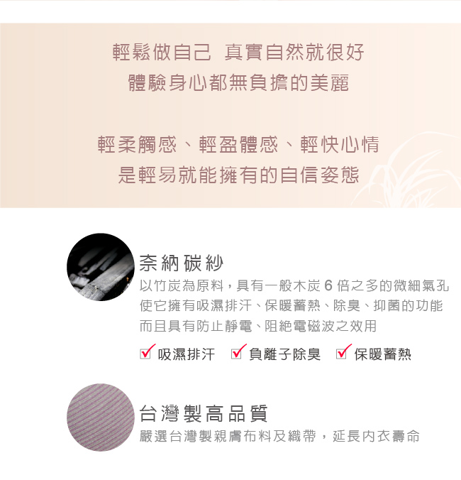 貼膚內裡採奈納碳紗材質,美麗好健康
