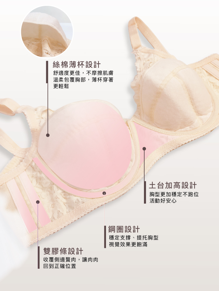 心機彈力設計,更服貼胸型,視覺更豐滿