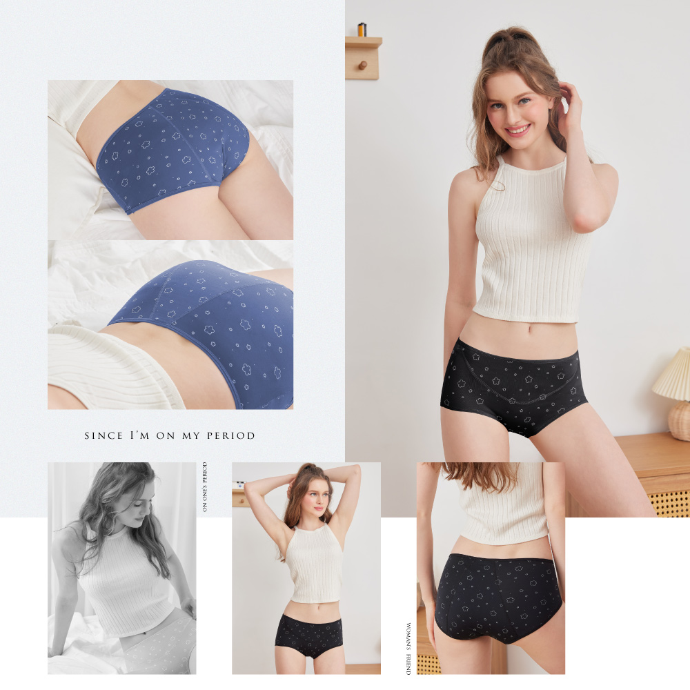 【Clany可蘭霓】 台灣製涼感竹炭遠紅外線印花抑菌消臭M-XL防漏生理褲 星夜黑 2235-63