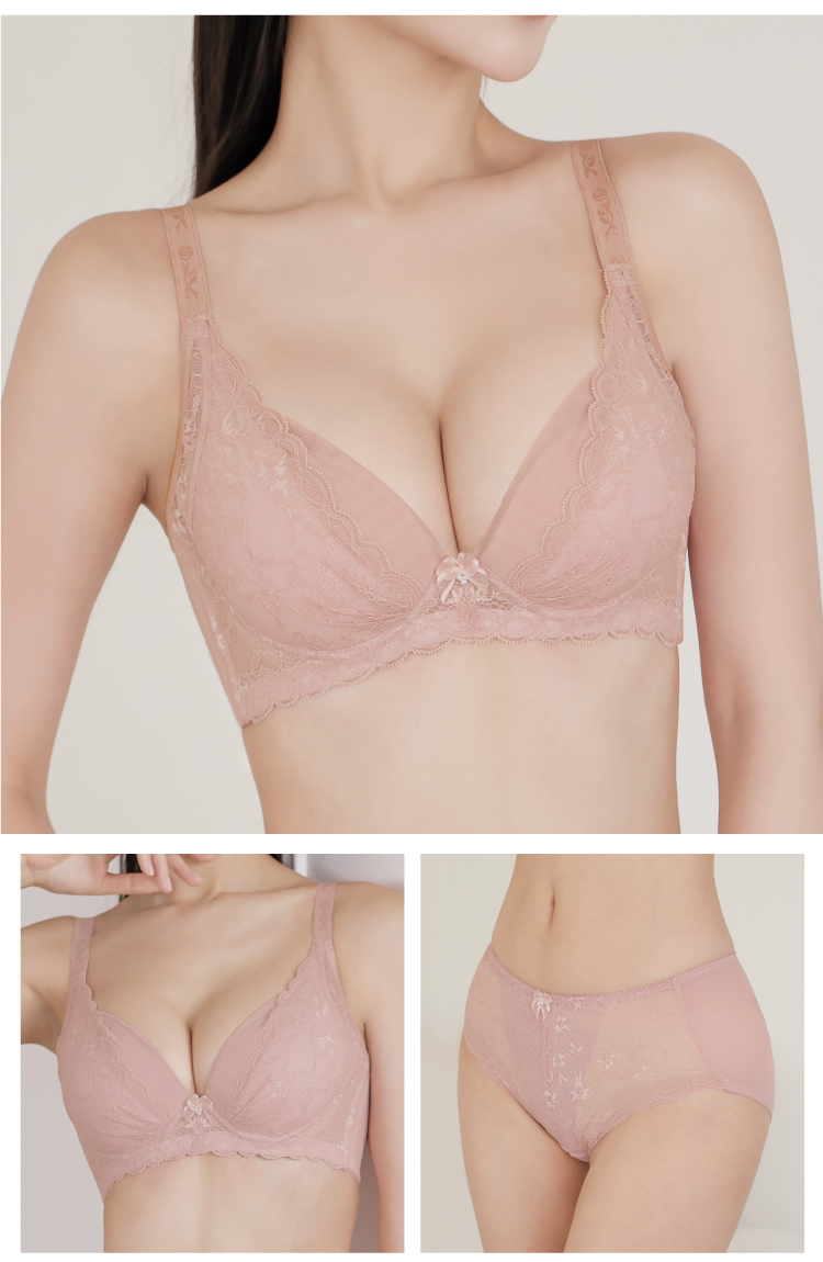 【Clany可蘭霓】夢幻花語 蕾絲透膚中腰M-XL內褲 柔霧粉 3059-32