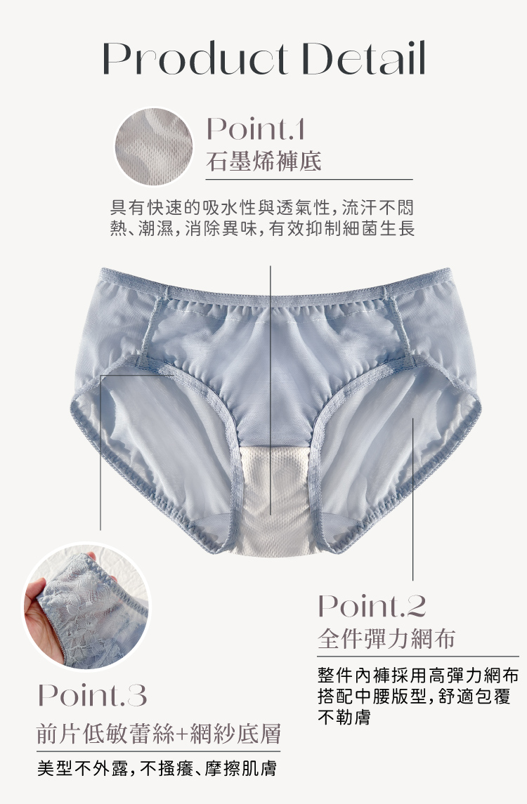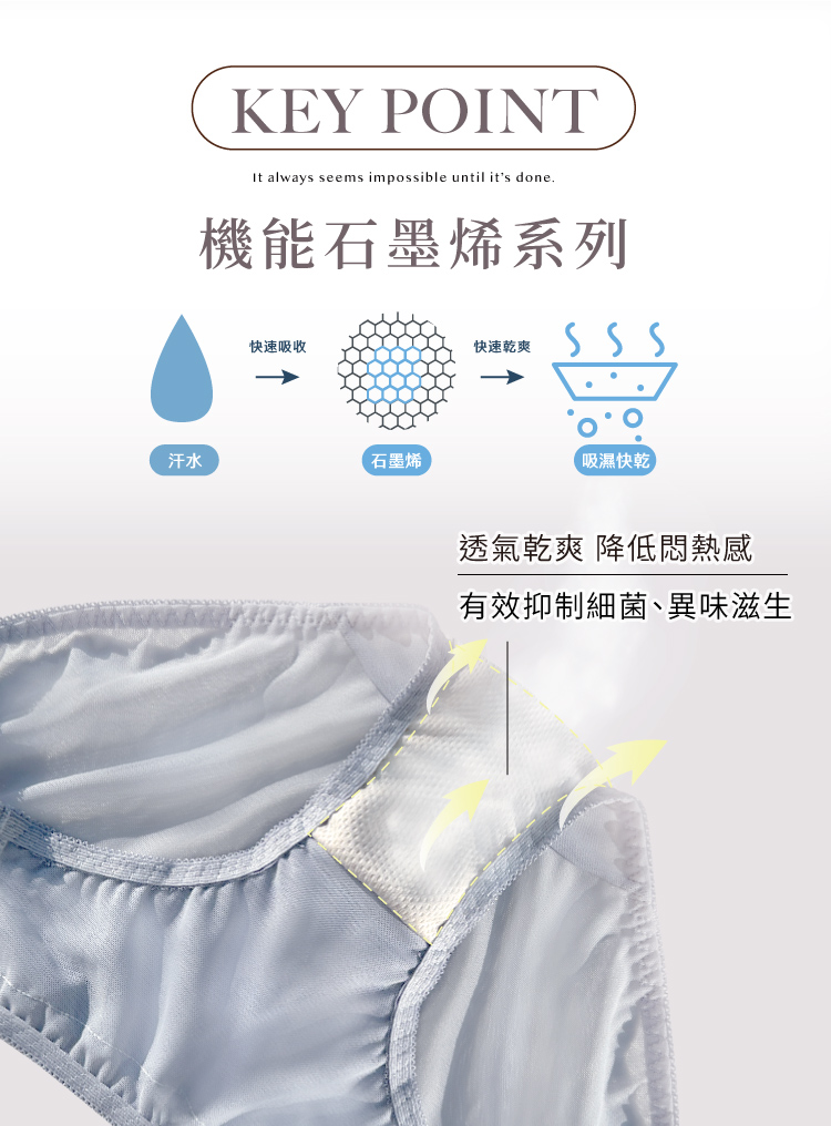 機能石墨烯褲底,抑菌消臭乾爽透氣